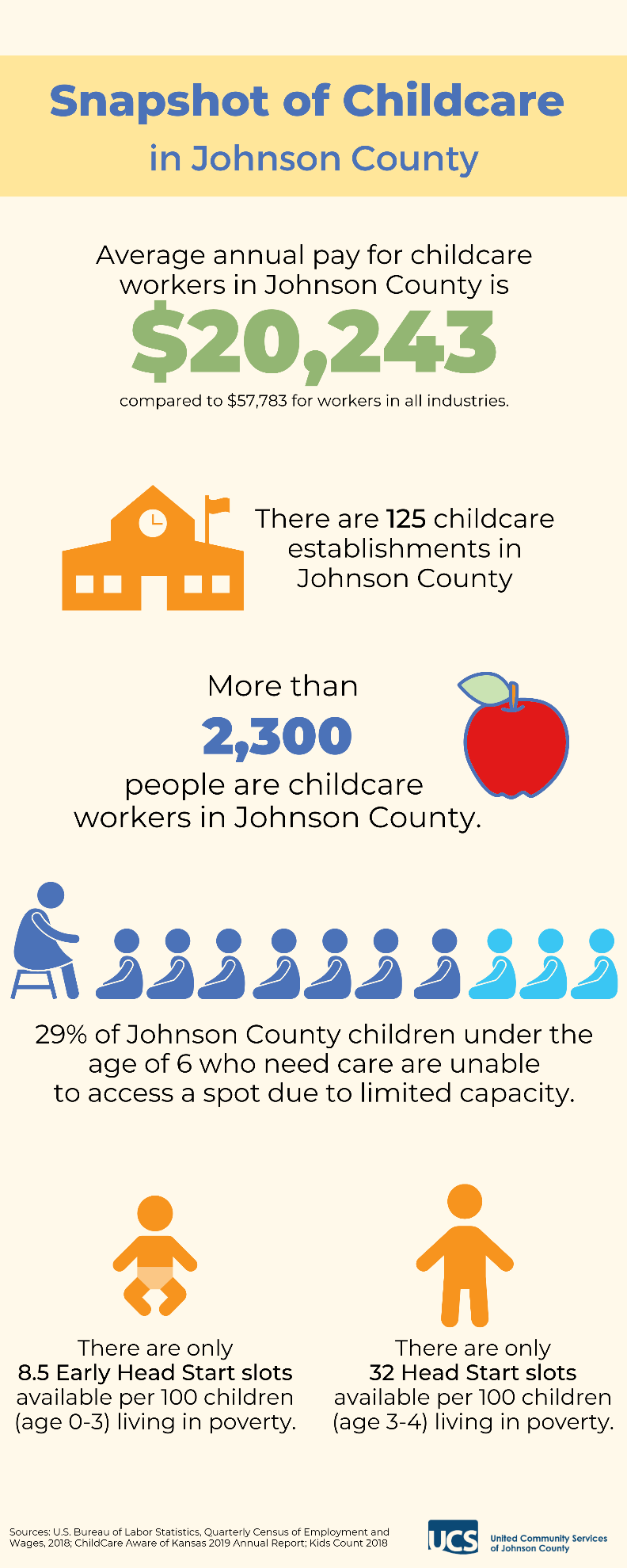 Childcare is an essential part of our economy that prepares children for the future and enables parents and caregivers to work, all while employing a large workforce. In light of the COVID-19 disaster, this sector of the economy is struggling. Across the country, many providers have been forced to close their programs or are staying open to provide emergency care for the children of essential workers. A snapshot of Johnson County’s childcare economy and capacity indicates that challenges already existed before COVID-19 and may be exacerbated by the economic fallout of the virus.